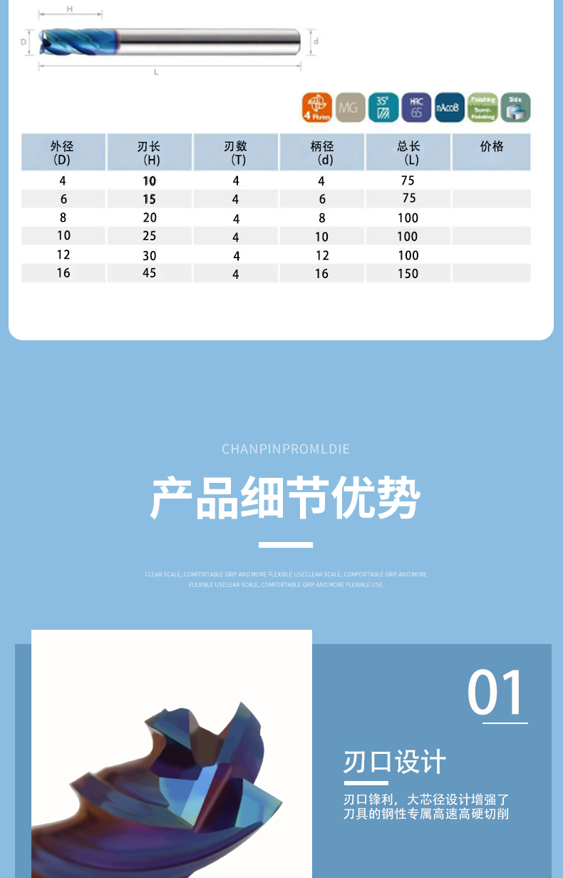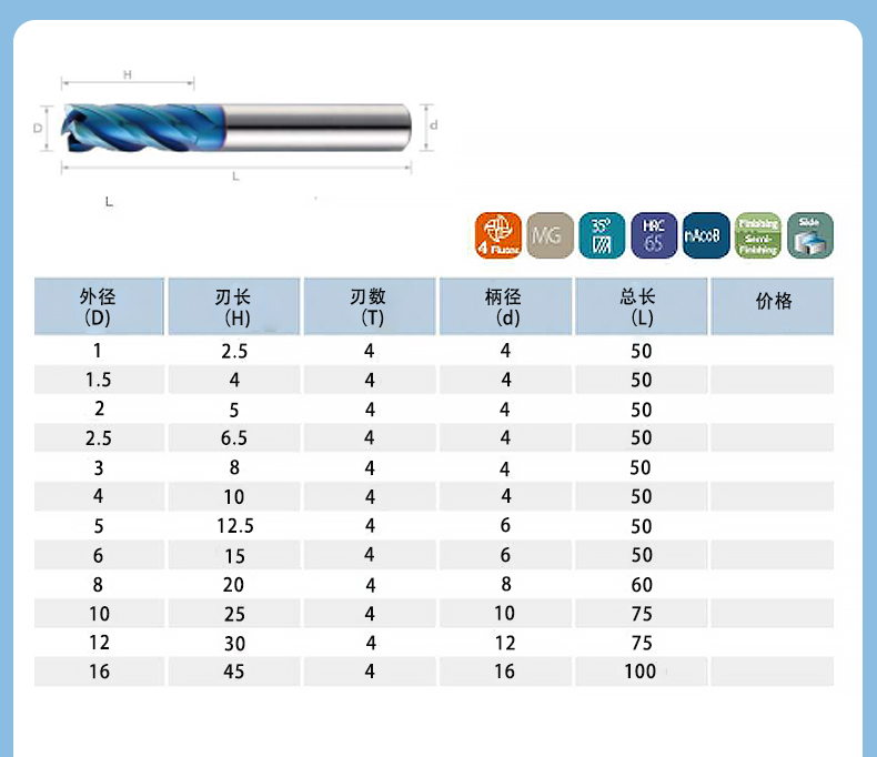 高速高硬度銑刀(藍(lán)色涂層)